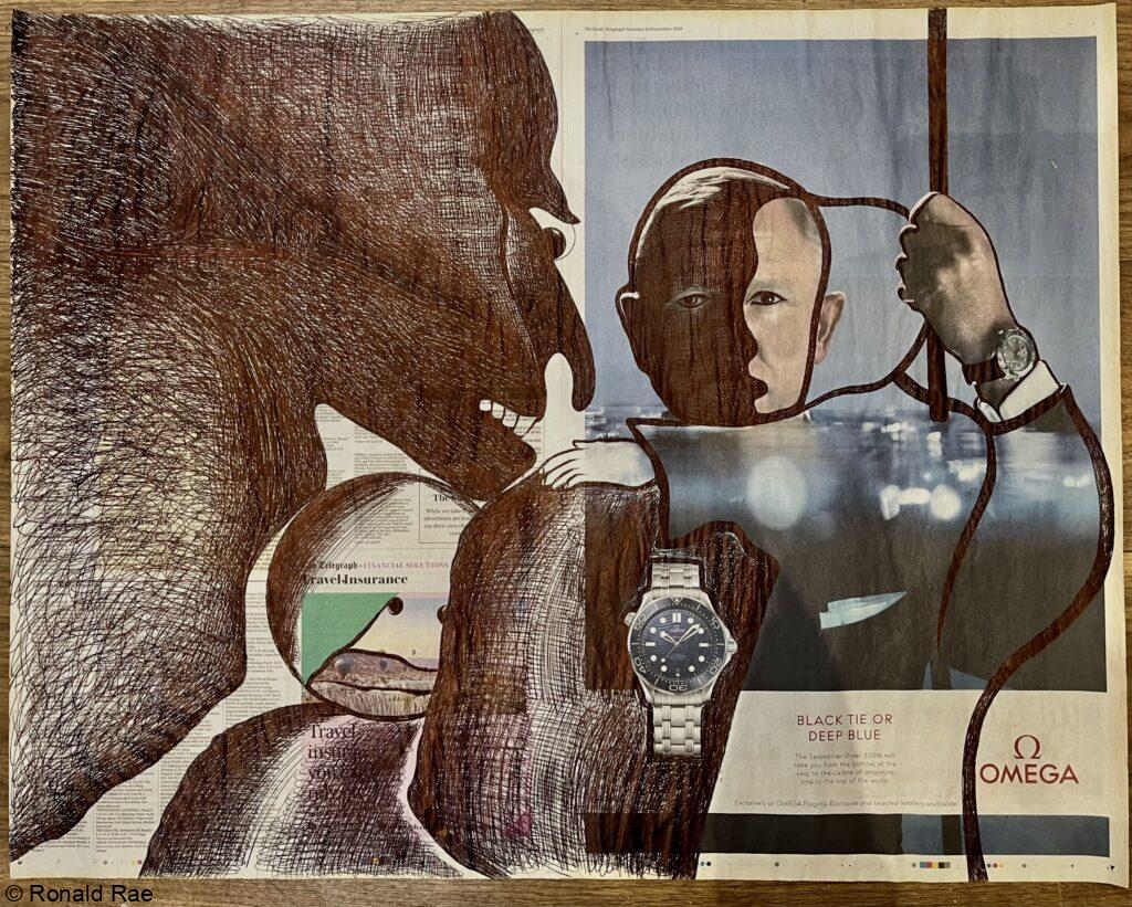 This work, dated according to the newspaper from or soon after 15th December 2018, extends our understanding of the length and breadth of the Daily Telegraph series. We previously believed that the series ended in 2017. This work relates to a very dark time for Rae, as his second wife Pauline, was seriously ill with cancer at this time. There are believed to be over 1000 biro drawings in this series alone.
