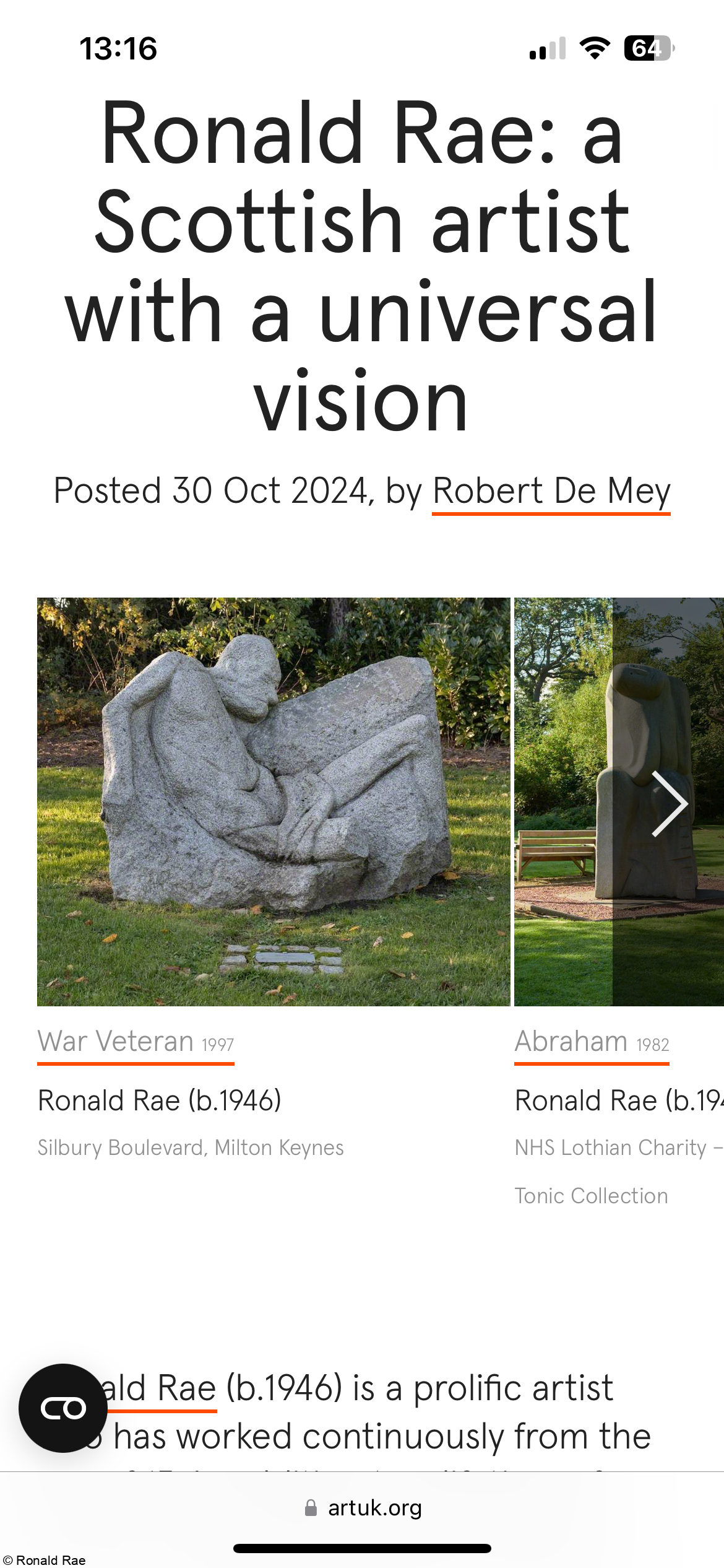 An artist monograph on the life and work of Ronald Rae written by Robert De Mey is published on 17 November 2023 by Unicorn Publishing Group. This details his origins, his self-education, influences, practice and diversity as an artists across multiple different media.