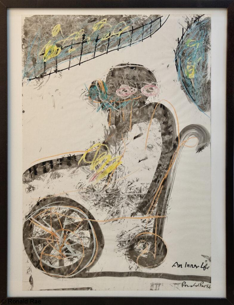 Richard De Marco, Scottish European of the Year 2025, had accepted another work by Ronald Rae into the Foundation collection, just in time for it’s export to the Muzeum Sztuki. The Sztuki, in Lodz, is one of the oldest and most prestigious Galleries in Europe, and its acquisition of the De Marco collection and archives marks a deep connection between the Scottish and Polish peoples, and De Marco’s efforts to create a wider bond between European nations, promoting a shared history, spirit and understanding. Richard De Marco is draw to the humane and universal expressionism of Rae’s work, and the present acquisition, ‘An Inner Life II‘ from 1984 (celebrating the life-force of people with disabilities, and exhibited ConvergeDiverge, 2023-24), joins the earlier ‘The Betrayal n.8‘ of 1980, acquisition n.1193.